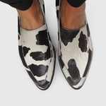 Strukturált kényelem kifejező dizájnnal a mindennapokra. A Macarena loaferek ötvözik a hegyes orr eleganciáját az állatmintás fekete-fehér kivitelezéssel. Alacsony sarkuk, minőségi anyagaik és kényelmes illeszkedésük ideálissá teszi őket, hogy erőfeszítés nélkül kitűnjenek.