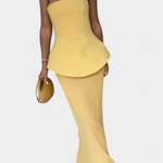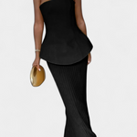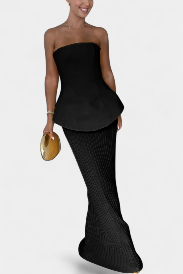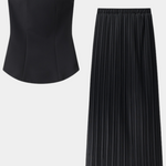 Elegáns és gondtalan, a Trinidad szett a pánt nélküli kényelmet és magabiztosságot ötvözi. A bandeau stílusú, struktúrált top és a finoman pliszírozott szoknya párosa felemelő könnyedséget biztosít napos sétákhoz, laza vacsorákhoz vagy elegáns napi megjelenésekhez.