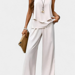 Sikkes és erőfeszítés nélküli. A Martina készlet a egyszerűséget boho eleganciává alakítja, köszönhetően a folyékony, ujjatlan felsőjének és az egyenes nadrágnak, amely művészi mintával rendelkezik, ami személyiséget ad anélkül, hogy túlzásba esne. Egy jó sziluett, amely bármilyen környezethez alkalmazkodik frissességgel és stílussal.