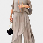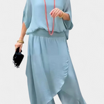 Két részes Maravilla folyékony szett, laza toppal és aszimmetrikus szoknyával