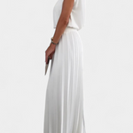 Sofisztikált minimalizmus erős és nőies siluettel. A Liora szett kiemelkedik a hát nélküli felsőjével, amely nyitott hátul és hangsúlyos vállakkal rendelkezik, széles, elegánsan áramló plissé nadrágokkal kombinálva. A tökéletes kombinációja a kényelemnek és a kifinomult stílusnak.