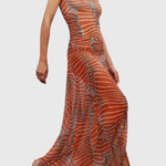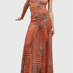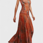 Retro stílus modern attitűddel. A Silvina szett egy szoros topot kombinál egy félig átlátszó midi hálós szoknyával, amely mozgás közben áramlik. Pszichedelikus hullám mintája vibráló és stílusos megjelenést kölcsönöz, ideális, hogy frissen kiemelkedjen napos napokon és ritmikus estéken.