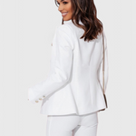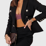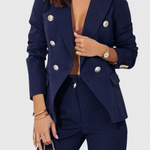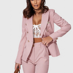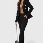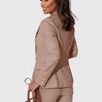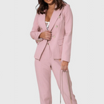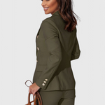 Szerezz önbizalmat a Rosalind szettel, egy elegáns két részes öltözet, amelyet a modern nők számára terveztek, akik az eleganciát és az erőt egyensúlyozzák. A testhezálló blézer és a szűk nadrág kiemeli az alakodat, miközben rugalmas kényelmet biztosít. Ideális munkahelyre, értekezletekre vagy formális alkalmakra, ez a te választásod a fáradság nélküli kifinomultság eléréséhez.