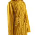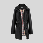 Elegáns és funkcionális, a Doemi hosszú esőkabát időtálló stílust kínál a mindennapi praktikussággal. Testhez álló siluettával és vízálló anyagból készült, megbízható védelmet nyújt anélkül, hogy feláldozná az eleganciát — ideális kényelmes mozgásra esős napokon.