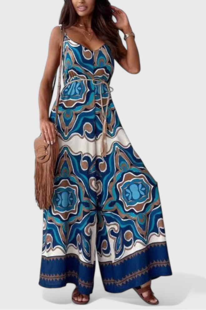Tegyen lenyűgöző belépőt a Gabriellával: egy folyékony, széles lábú overall, amelyet azért terveztek, hogy felhívja a figyelmet. A kedvező V-nyakának, vékony pántjainak és derékvonalat kiemelő övének köszönhetően ez a megjelenés merész mintát ötvöz a lazasággal. Tökéletes napos napokra vagy elegáns estékre.