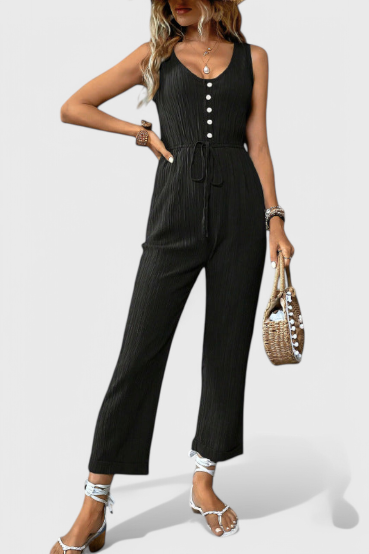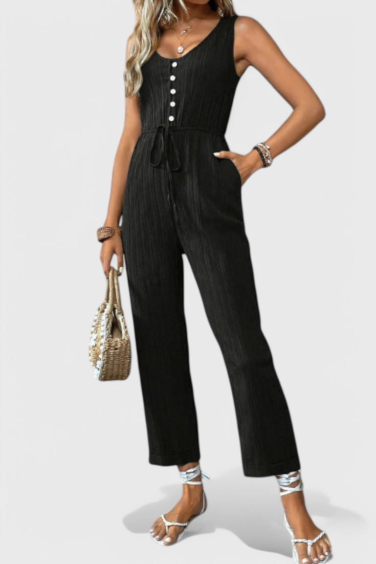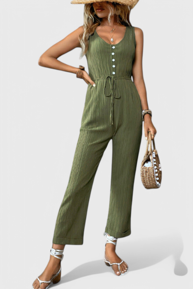 Fényes, lélegző és végtelenül sokoldalú—Marisela a te választásod a fáradság nélküli eleganciához. Texturált pamut keverékből készült, ez az ujjatlan egyrészes ruha előnyös V nyakkal, derékban meghatározott övvel és egyenes, letisztult siluettel rendelkezik. Akár reggelire indulsz, akár egy nyári estélyre készülődsz, a modern kifinomultságot és kényelmet garantál.