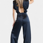 Vibráló és vonzó, ez a mono úgy lett tervezve, hogy kiemelkedjen folyékony esésével, felfedett hátával és laza stílusával. Tökéletes különleges alkalmakra vagy elegáns estékre, kényelmes sziluettet kínál, amely a modern eleganciát sugározza.
