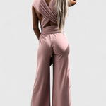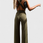Minimalista és szexi, ez a mono merész stílusnyilatkozat, nyitott háttal és elegáns keresztbe csattant pántokkal. Széles és folyékony sziluettje meghosszabbítja az alakot és kényelmet biztosít minden mozdulatnál.