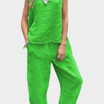 Leona ujjatlan, pamut vászon, mellény és nadrág