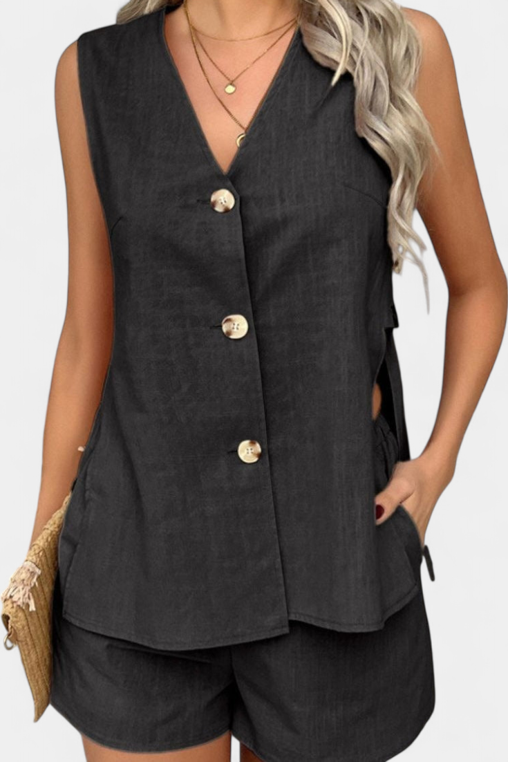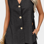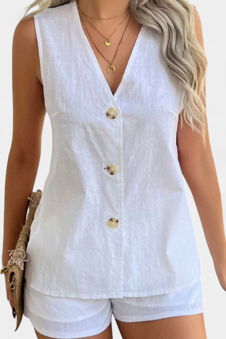 • Hát nélküli ing V-nyakkal és gombokkal, amely strukturált és tiszta megjelenést biztosít