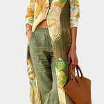 Egy szett, amely a forró napokat a laza elegancia kifejezésévé alakítja. A Melvina a vászon frissességét ötvözi egy folyékony és kifinomult dizájnnal, ideális a nyár élvezetére szabadsággal és gráciával. Széles és sokoldalú sziluettje végigkísér a tengerparti sétáktól a csillagok alatt tartott vacsorákig, mindig megőrizve a tökéletes egyensúlyt a kényelem és a kifinomultság között.