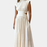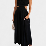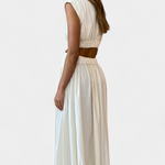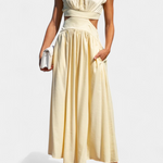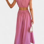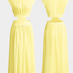 Egy szett, amely az eleganciát tiszta vonalakkal és stratégiai részletekkel alakítja át. Jocelyn egy magas nyakú dizájnt ötvöz oldalsó nyitásokkal és egy folyékony sziluettel, amely finoman kiemeli az alakot. Tökéletes szezonális eseményekhez, nyári estéhez vagy olyan pillanatokhoz, amikor az építészeti stílus és a frissesség találkozik.