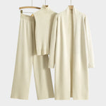 Ez a bézs színű három részes női szett újradefiniálja a modern eleganciát egy minimalista érintéssel. Sokoldalú és kifinomult dizájnja ideálissá teszi azt mindazok számára, akik kényelmet, stílust és kifinomultságot keresnek egyetlen ruházatban.