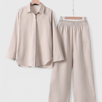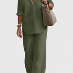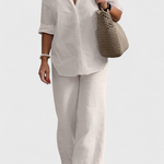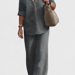 Egyszerű kifinomultság egy olyan siluettel, amely frissességet és természetességet sugároz. A Skye szettek egy laza inget gombokkal és rugalmas derékú nadrágot kombinálnak, mindkettő könnyű pamut és len keverékből készült. Egy sokoldalú kombináció, amely egyensúlyt teremt a kényelem, stílus és funkcionalitás között a mindennapokban.