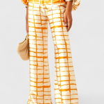 A Sybella szett egy vállra eső ujjú blúzt és bő nadrágot ötvöz egy művészi mintával. A célja, hogy folyékony, személyiséggel teli sziluettet biztosítson, ideális napos napokra, laza kifejezésekhez vagy stílusos találkozókhoz.