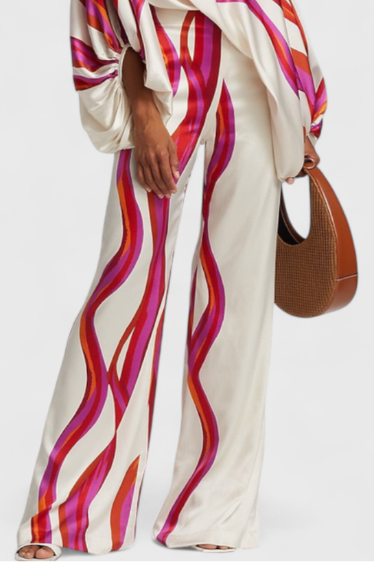 Sybella Két Darabos Szett Lezser Vállakkal és Széles Minta Nadrággal