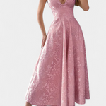 Gilda Midi Jacquard Ruha Nyitott Háttal és Magas Derékkal