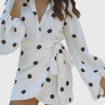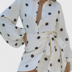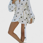 Romara Mini Ruha Pöttyökkel, Hosszú Ujjakkal és Karcsú Derékkal