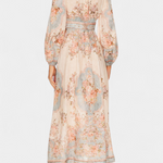 Természetes báj egy boho és kifinomult légkörrel. A Dorotila ruha kiemelkedik maxi harang alakjával, puffos ujjai karaktert adnak neki, és finom virágminta díszíti. Az elülső dekoratív gombok elegáns érintést kölcsönöznek, míg a folyékony esése kényelmet és könnyedséget biztosít egész nap.