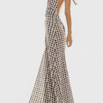 Retro báj egy modern siluettel, amely természetesen kiemeli az eleganciát. A Melodija ruha egy klasszikus pöttyös mintát kombinál egy mély halter dekoltázzsal, amely hangsúlyozza a felsőtestet. Puffos dereka és folyékony hossza karcsú és nőies alakot teremt, ideális a kecses kiemelkedéshez.