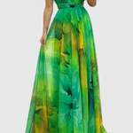 Maxi Ruha Caprice Chiffon Virágmintával és Halter Dekorral