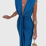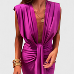 A lenyűgözésre tervezett Lakisha ruha egy kifejező sziluettet ötvöz a kifinomult szexualitással. Mély dekoltázsa, középső redőzése és elülső nyitása olyan vonzó struktúrát hoz létre, amely elegánsan kiemeli a vonalaidat. Élénk színekben elérhető, így tökéletes választás különleges eseményekre, koktélpartikra vagy vacsorákra, ahol ragyogni szeretnél.
