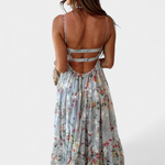 Neha Virágmintás Ruha Nyitott Háttal és Vékony Pántokkal