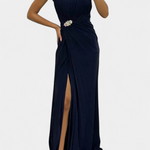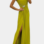 Tökéletes kombinációja a folyékonyságnak, eleganciának és jelenlétnek. A Shiloh könnyű anyagával, gondosan kidolgozott plisszálásával és oldalsó nyílásával tűnik ki, amely minden mozdulatot kecsesen kísér. A keresztpántos dekoltázs finoman körülöleli a melleket, míg a folyékony sziluett elegánsan nyújtja az alakot.