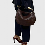 A Woven Gerda táska az kézművesség, struktúra és elegancia ünnepe. Magas minőségű vegán bőrből készült, bonyolult fonott dizájnja a részletekre való figyelmet és a márka időtlen esztétikáját tükrözi. Az arany rozsdamentes acélból készült felső fogantyú, szoborszerű dizájnjával modern érintést ad, így a Gerda egy olyan kiegészítő, amely egyszerre klasszikus és művészi.