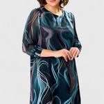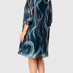 Elegancia mozgásban, hogy könnyedén és magabiztosan emelje a mindennapi stílusodat. Az Almira ruha lenyűgöz az óceán csavarásait idéző mintájával és könnyű anyagával, amely minden lépésnél áramlik. Formáló dizájnja simán alkalmazkodik a sziluetthez, ötvözve a frissességet, sokoldalúságot és egy időtlen bájt.