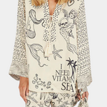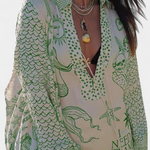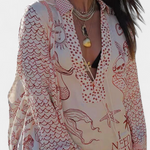 Boho stílusú, laza szabású ing. Az Amália szett az ing laza dizájnját a tenger ihlette mintákkal és rugalmas rövidnadrággal kombinálja, így egy laza, nyári megjelenést teremt. Ideális azok számára, akik a kényelmet keresik anélkül, hogy elveszítenék a vizuális autentikusságot.