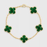 Finom és kifejező, ez az aranyozott karkötő egy sor négylábú motívum ikont kínál, létrehozva egy megjelenést, amely a kortárs szépséget elegáns bájjal ötvözi. Legyen szó önálló viselésről vagy rétegezésről, minden öltözékhez kifinomult légkört ad, a mindennapi ruháktól kezdve az esti eleganciáig.