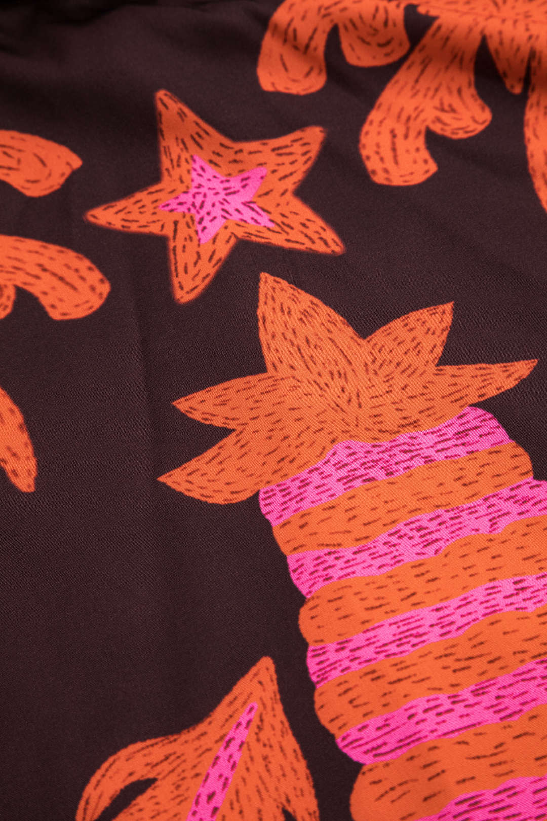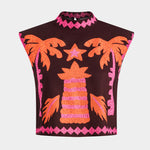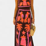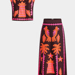 Merész és friss, a Sloan szett megörökíti a trópusi bájt modern érintéssel. Egy pálmafás mintával díszített, kivágott top és egy záras, koordinált szoknya jellemzi, amely stílust kínál a napfényhez, ideális nyári kiruccanásokhoz vagy nappali eseményekhez a városban.