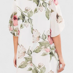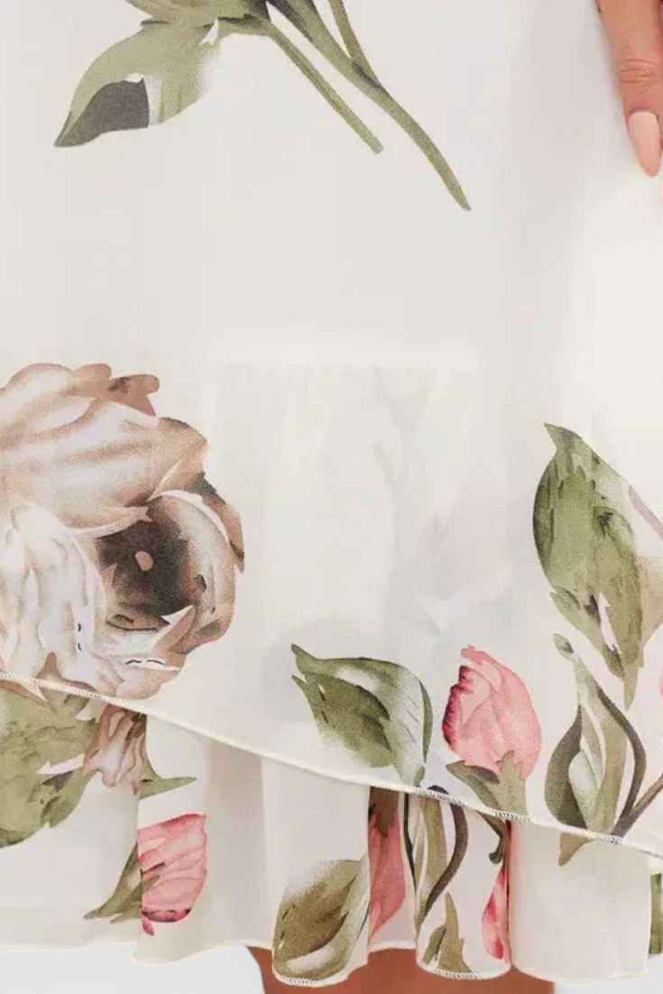 Éteri könnyedség egy olyan dizájnnal, amely finoman és frissen fejezi ki a nőiességet. A Tameka ruha a levegő áramlását egy finom rózsa mintával ötvözi, romantikus és vonzó sziluettet teremtve. Áttetsző ujjai és keresztezett V-nyaka finom érintést ad, amely kecsesen és természetesen mozog.