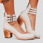 Elegáns szandálok közepes magasságú blokk sarkú, amelyek kifinomult pántokkal és biztos bokatámasszal rendelkeznek. A felsőrész magas minőségű bőrből készült, klasszikus varrásokkal.